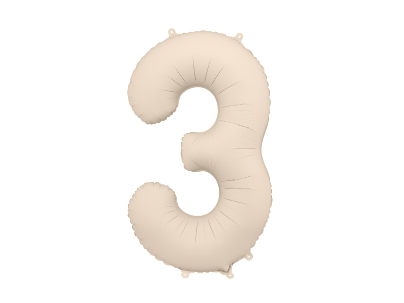 Balon foliowy Cyfra '3′, 86cm, jasny beż