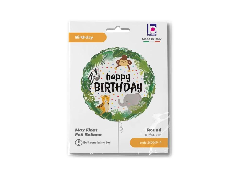 Jungle Birthday Safari 18″ – 46 cm,  balon z motywem dżungli od włoskiej firmy Grabo!