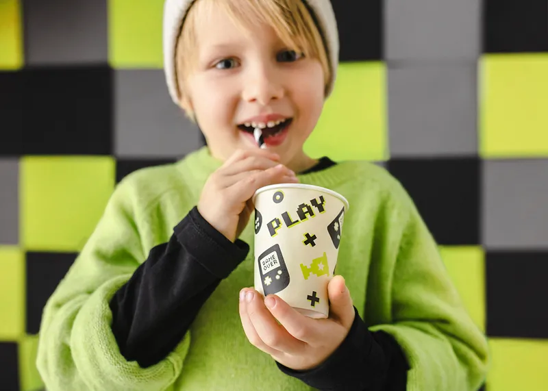 - Papierowe kubeczki z motywem gier komputerowych.