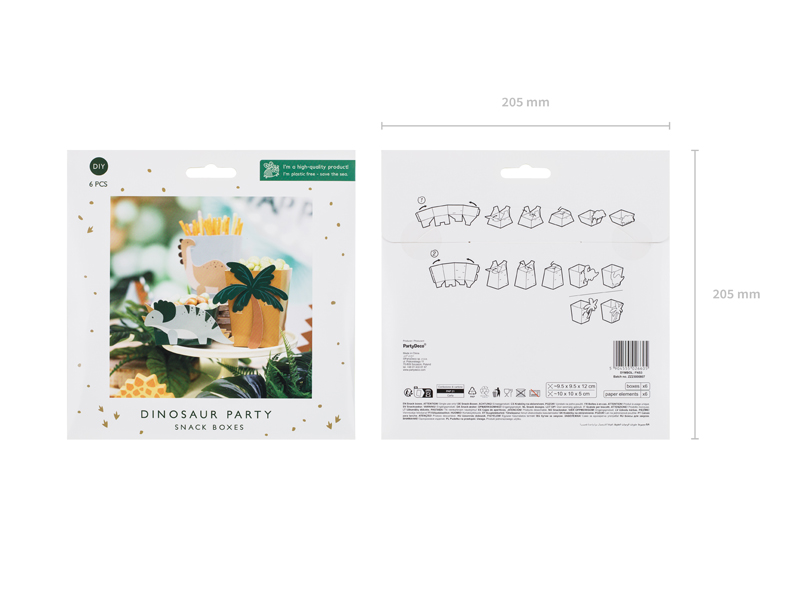 Dzieci, zwłaszcza chłopcy, szaleją za dinozaurami! Nasze pudełka na przekąski w połączeniu z innymi ozdobami z kolekcji Dinozaury pozwolą przygotować dla nich super dekorację stołu na urodziny i niezapomniane party! Kolorystyka Earthy Jungle jest stonowana i przyjazna dla najmłodszych, ale także pięknie komponuje się z naturalnymi roślinami.